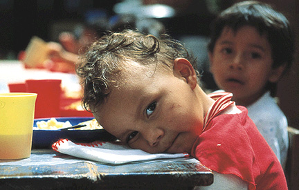 This boy is one of many children cared for at an excellent project on the edges of the Guatemala City dump. Many people in the area support themselves by picking the through the dump for re-usable or recyclable items. The children's project stands out as an oasis where a child can be safe, clean, fed and nurtured.
